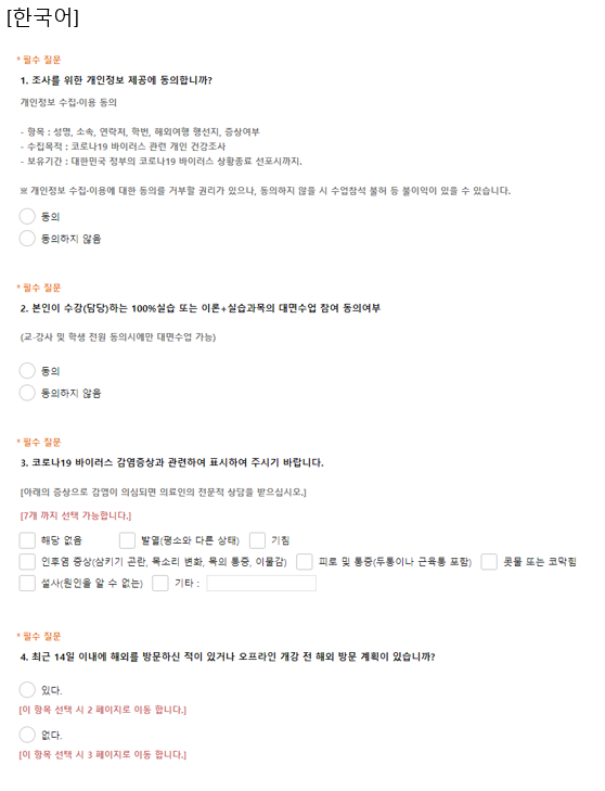 - 대면수업 설문서