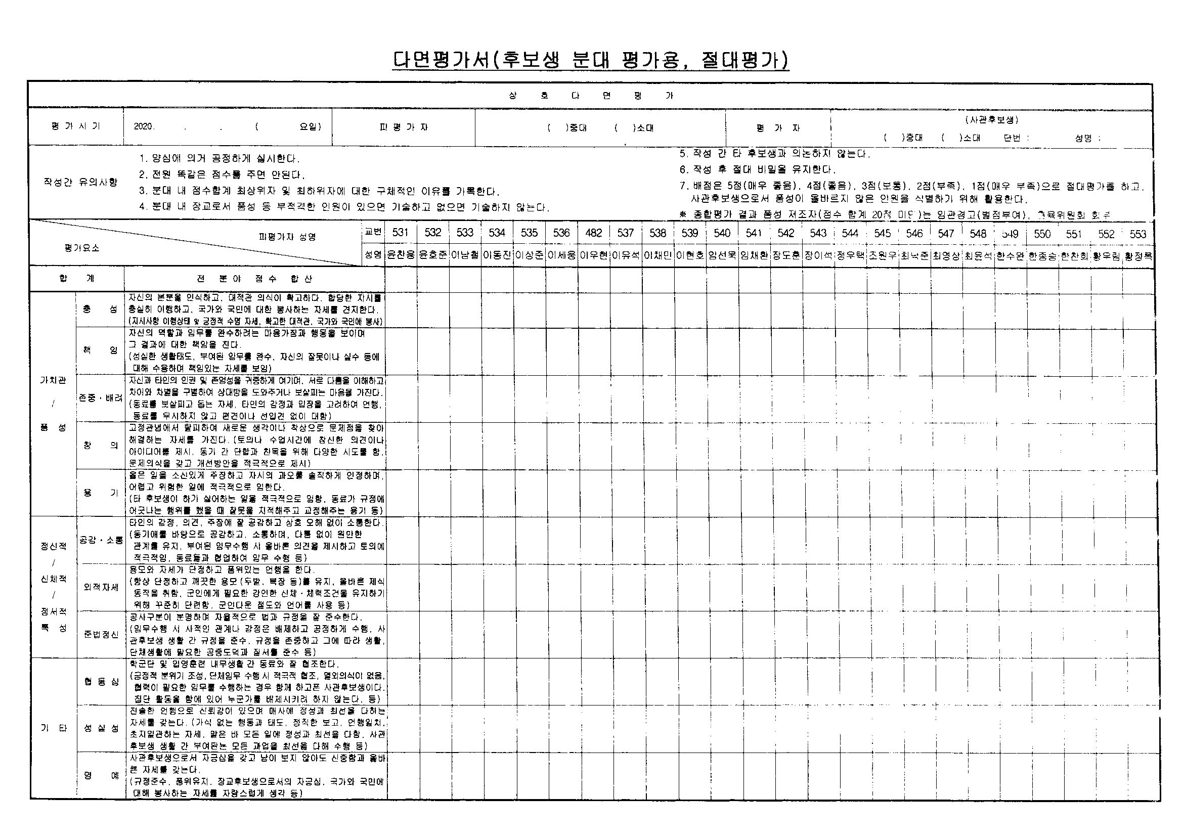 - 59기 다면평가(양식)