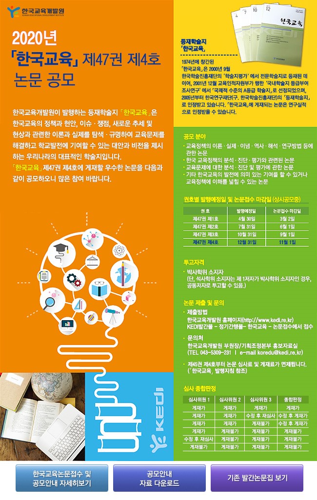 - [한국교육개발원] 등재학술지 한국교육 제47권 제4호 게재논문 공모 안내