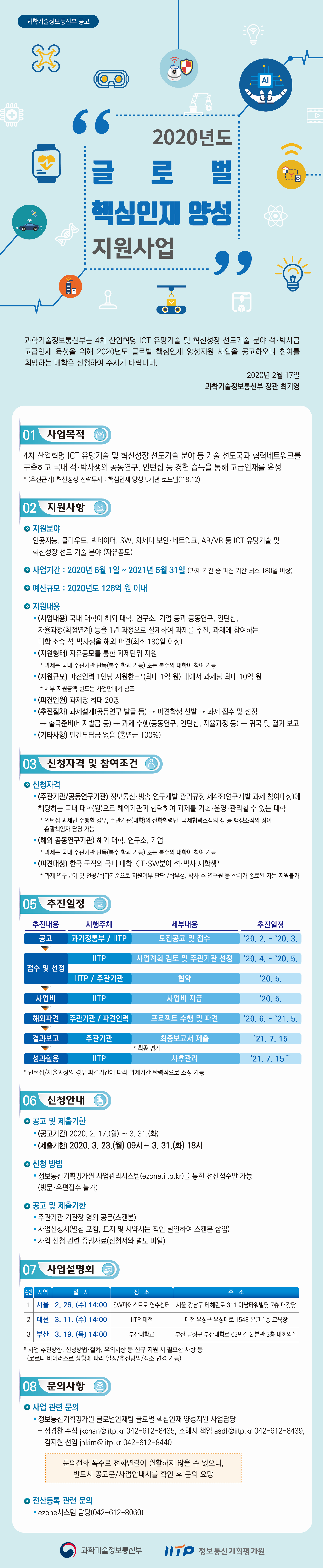 - [정보통신기획평가원] 2020년 글로벌 핵심인재 양성지원 사업 공고 홍보