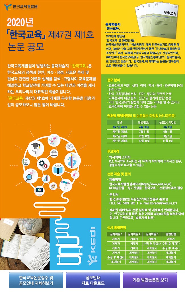 - [한국교육개발원] 등재학술지 한국교육 제47권 제1호 게재논문 공모 안내