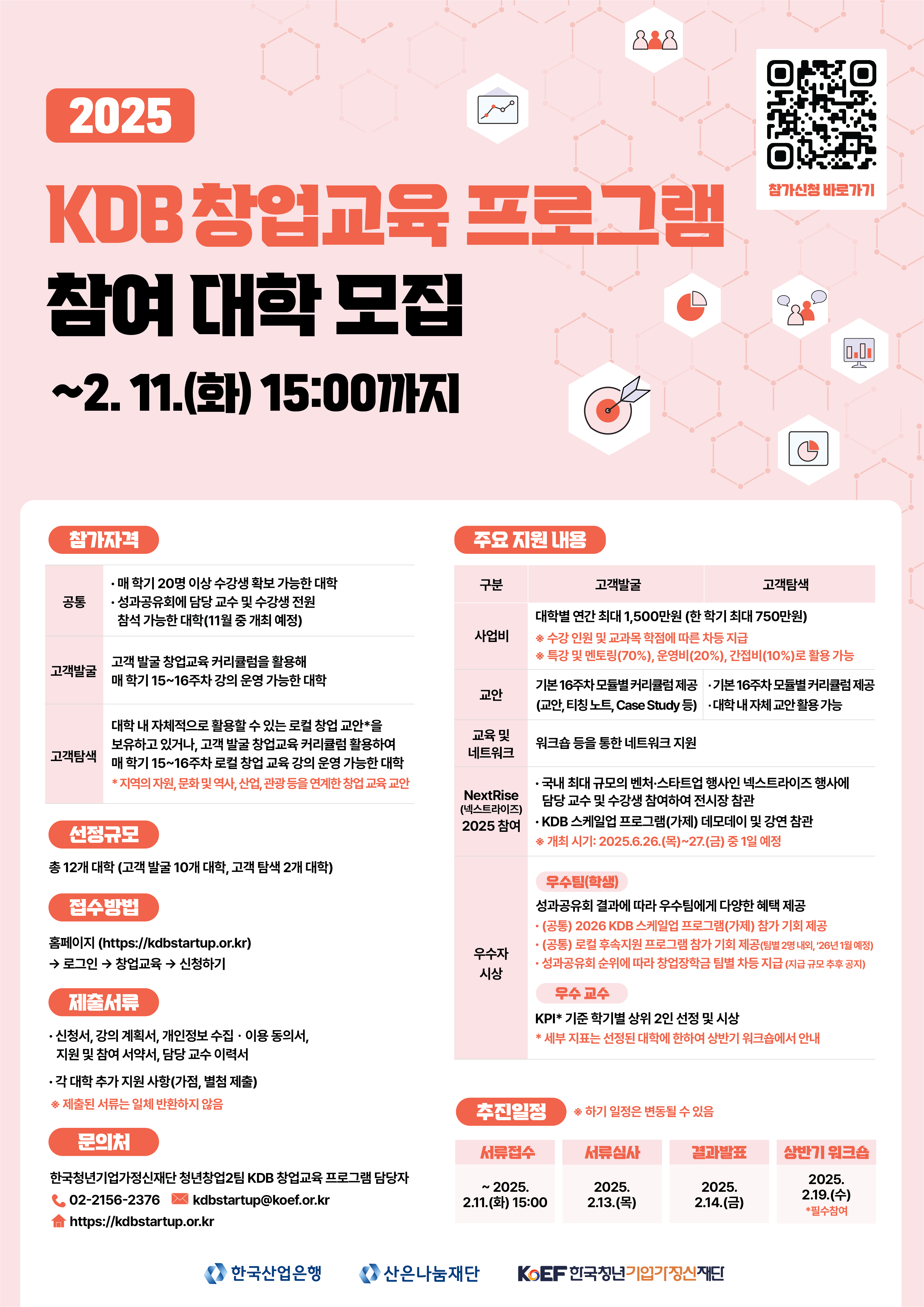 - [한국청년기업가정신재단] 2025 KDB 창업교육 프로그램 참여 대학 모집(~2/11)