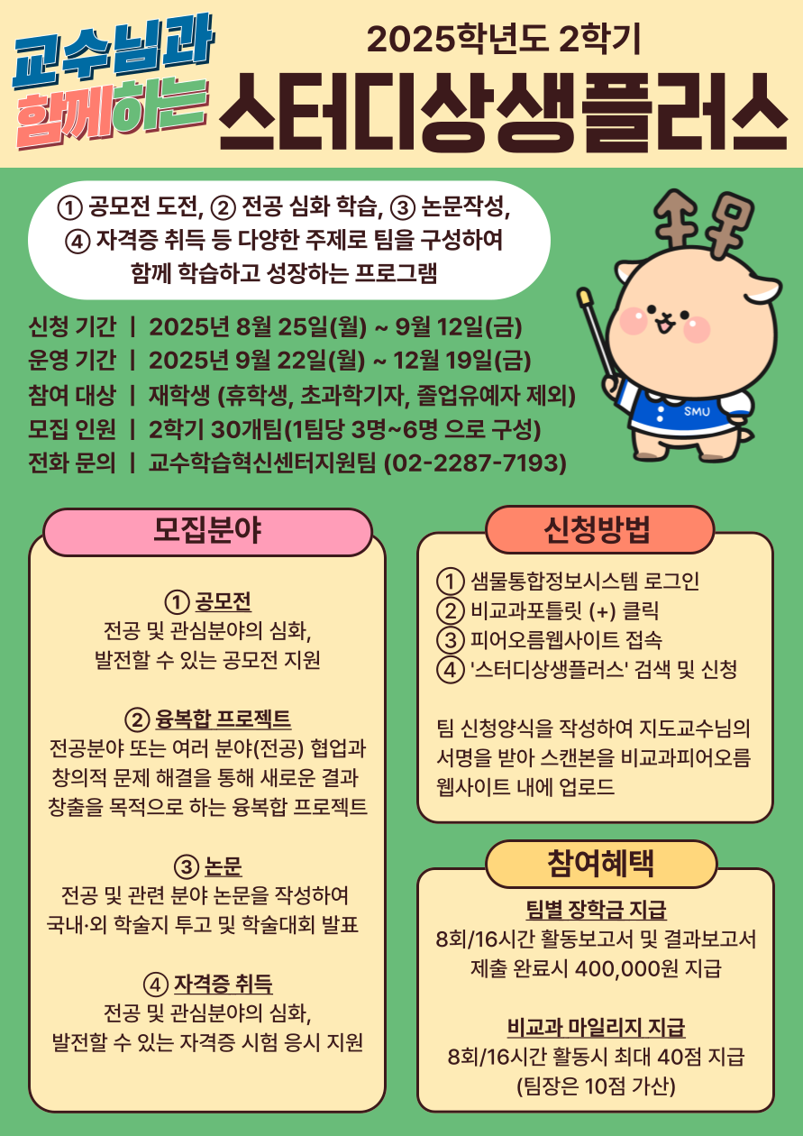 서울 [비교과] [교수학습혁신센터지원팀(서울)]2025학년도 2학기 스터디상생플러스 모집 안내 -