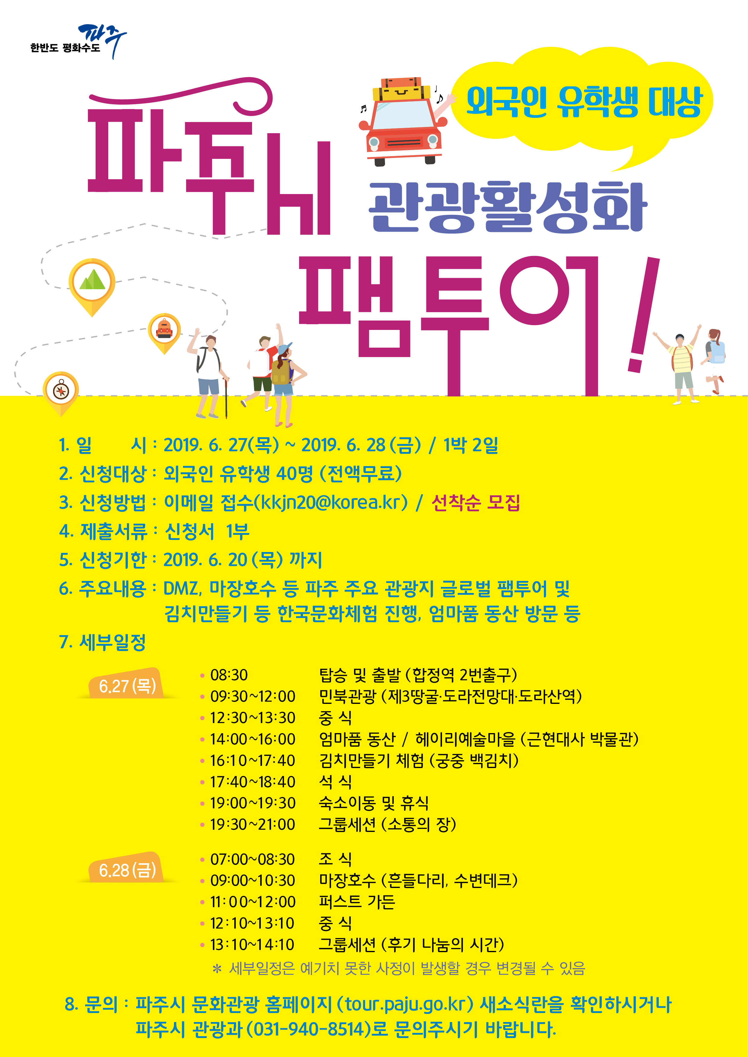 - '외국인 유학생 대상 파주 관광활성화 팸투어' 모집 안내